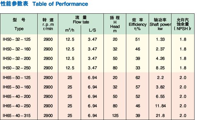 本系列泵性能范围流量6.3~400m³/h扬程5~200m,输送介质一般为-20℃~105℃,根据所输送介质泵的腐蚀情况,用户可选用相应的耐腐蚀材料。